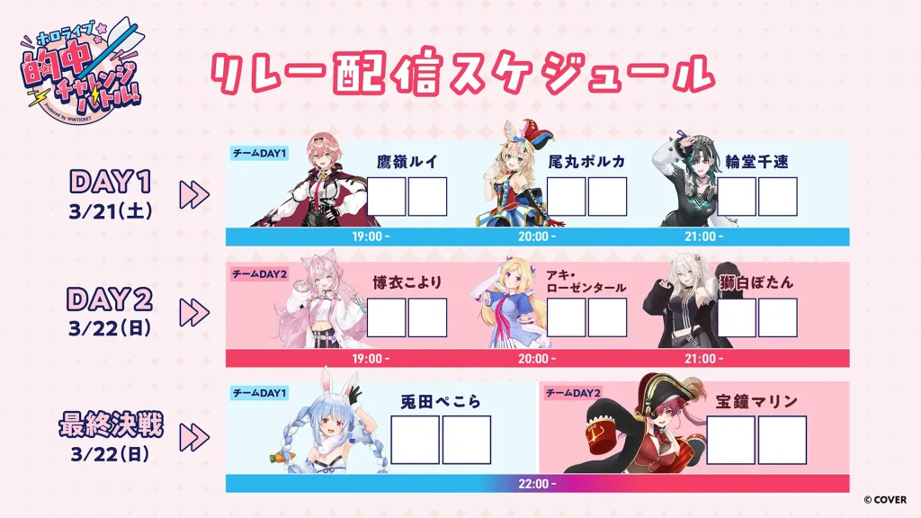2026年 3 月 21 日(土)、22 日(日)にWINTICKETとのタイアップ配信「ホロライブ 的中チャレンジバトル!」が開催されます。