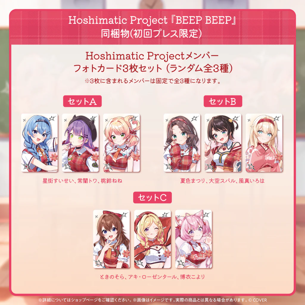 新曲「BEEP BEEP」のCDの初回プレス盤には特典としてフォトカード3枚セットが封入されます。