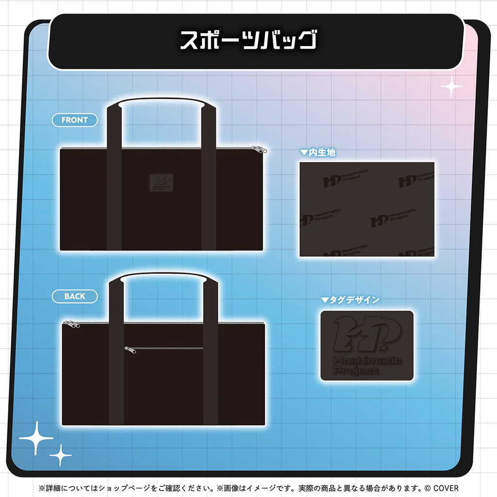 Hoshimatic Projectのロゴが入った大きなスポーツバッグ。